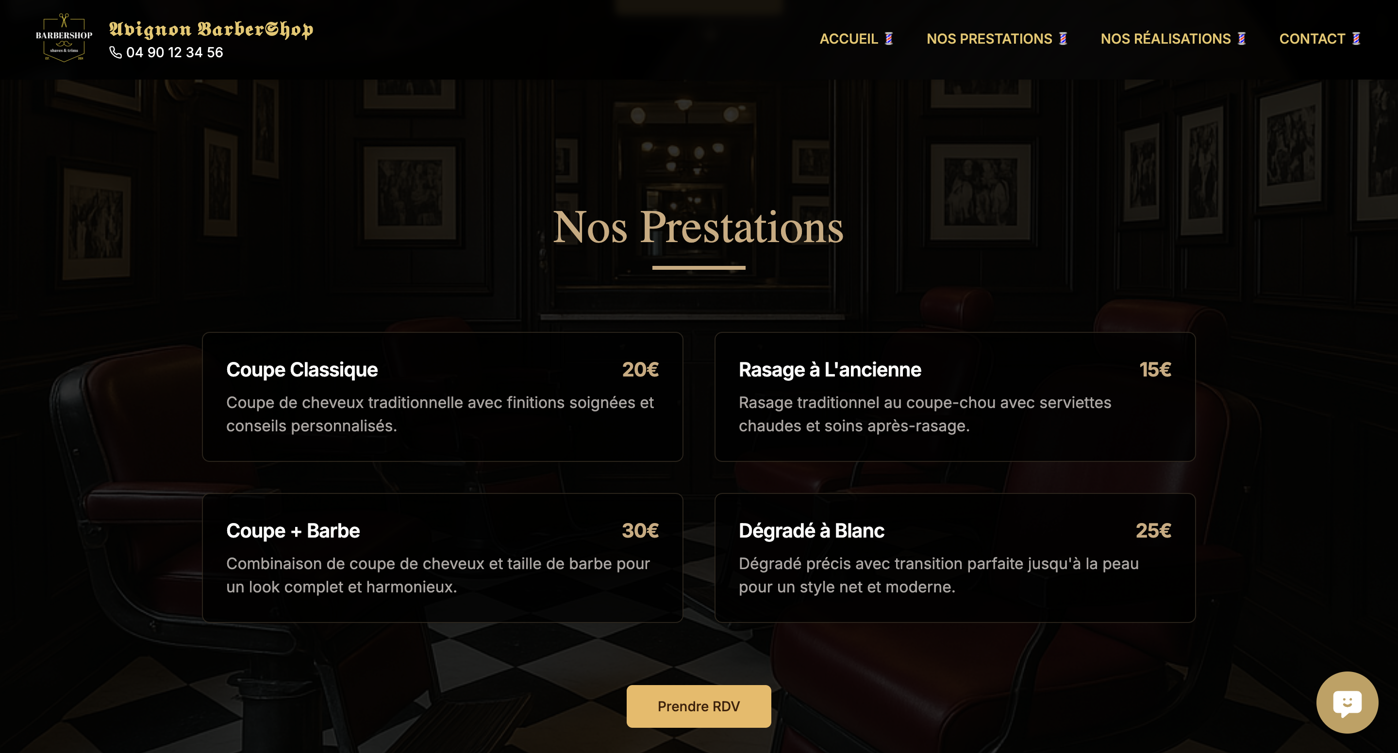 Création d’un site web vitrine pour un Barber Shop, intégration d’un système de réservation via Calendly et d’un chatbot booster par l’ia.