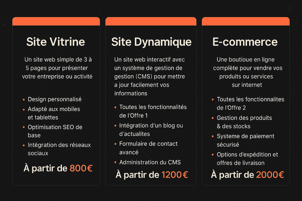 Je propose la création de sites web sur mesure, adaptés aux besoins réels de chaque client.